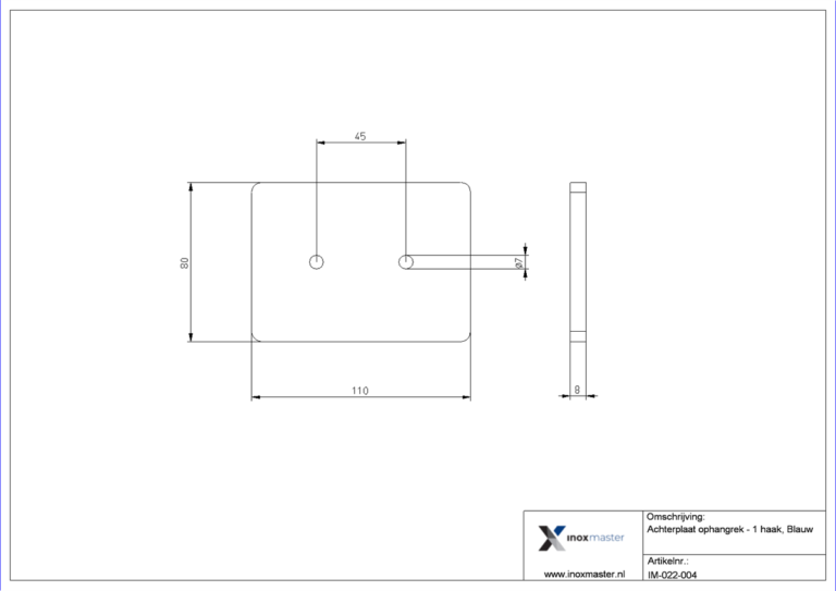 Deze achterplaat is te combineren met het Inox Master ophangrek 1 haakDeze HMPE achterplaten zijn verkrijgbaar in de kleuren blauw, wit, groen en zwart.Op deze manier is het eenvoudig om een onderscheid te maken in bijvoorbeeld afdelingen.