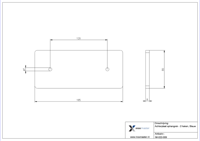 Deze achterplaat is te combineren met het Inox Master ophangrek 2 haken.