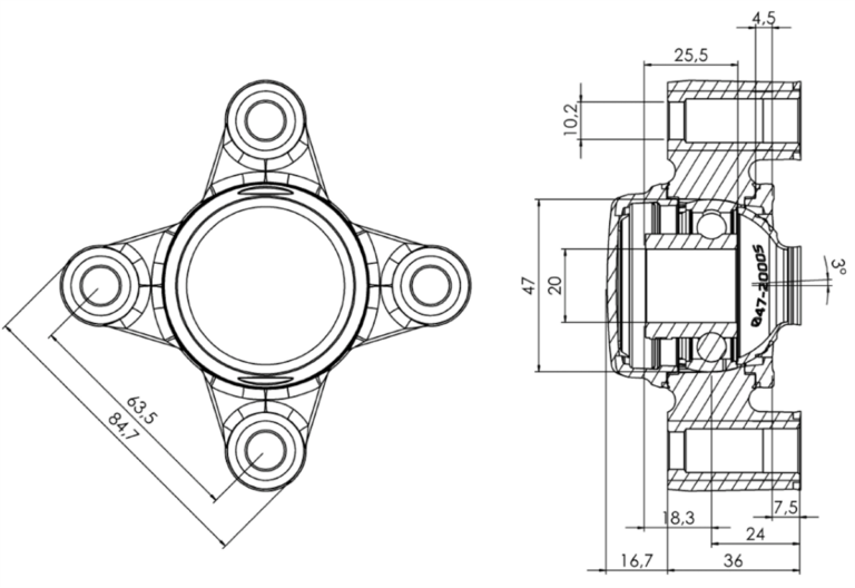 Het lagerhuis wordt parallel aan de asrichting gemonteerd. Bij dit gesloten model zit er aan de ene kant een draaibare deksel op die de lager afsluit en aan de ankere kant zorgt de kunstof er voor dat het strak om de as zit. Dit zorgt ervoor dat er geen vuil de lager in kan.