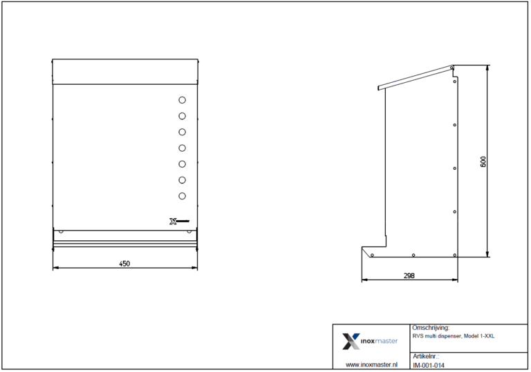 Multi-dispenser, Model 1-XXL is één van de ruimste modellen in deze serie en standaard voorzien van 1 vak.