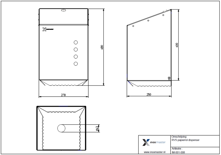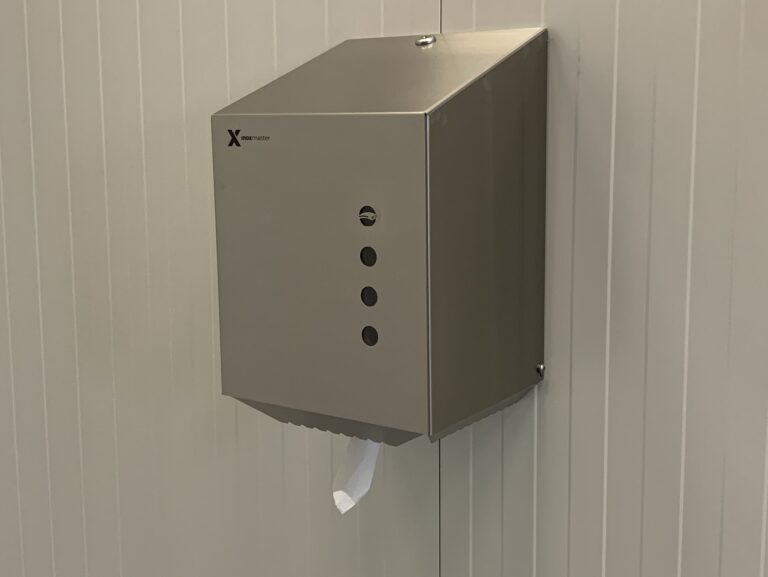 Deze papierrol dispenser is zeer geschikt voor het hygiënisch opbergen van 1 industriële papierrol tot een diameter van Ø 245 mm