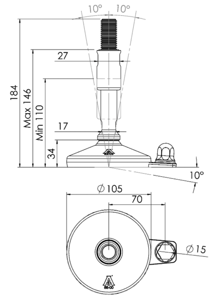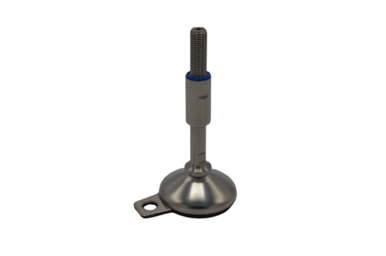 De hygiënische stelvoet bevat een huls dat de blootliggende schroefdraad bedekt en als contramoer fungeert.